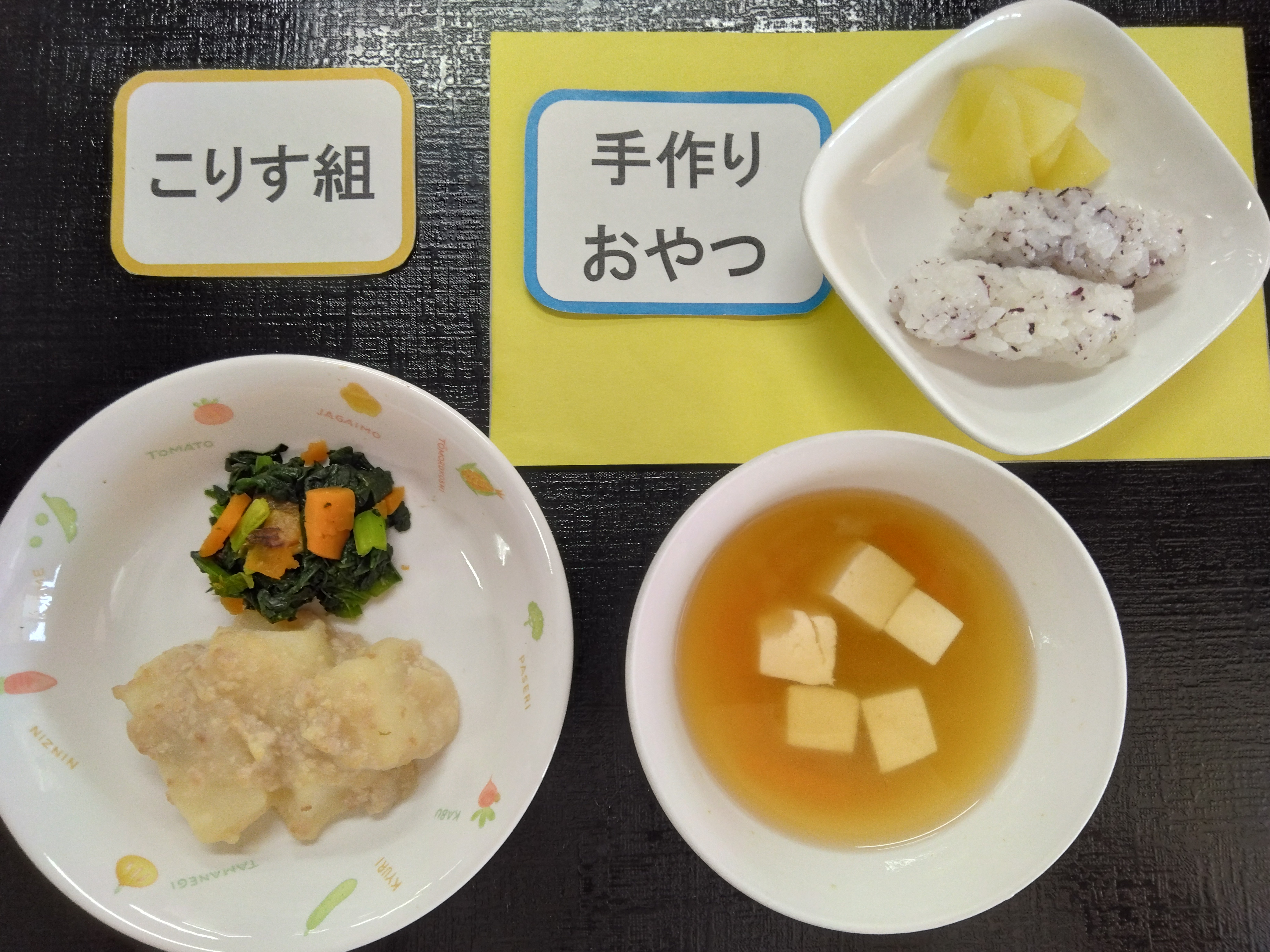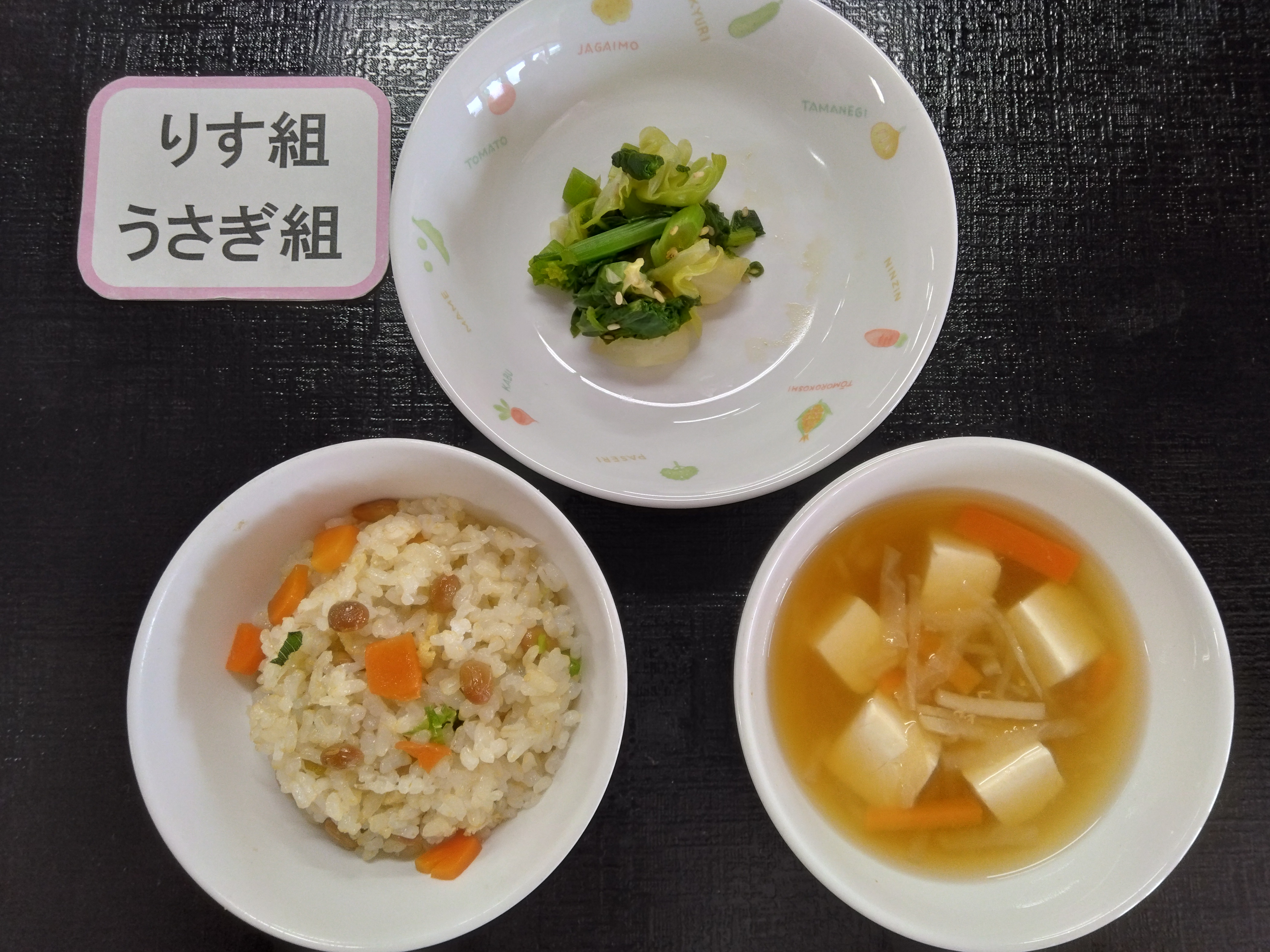 らいおんぐみさんが作った打ち豆がみそ汁の中に入っています。