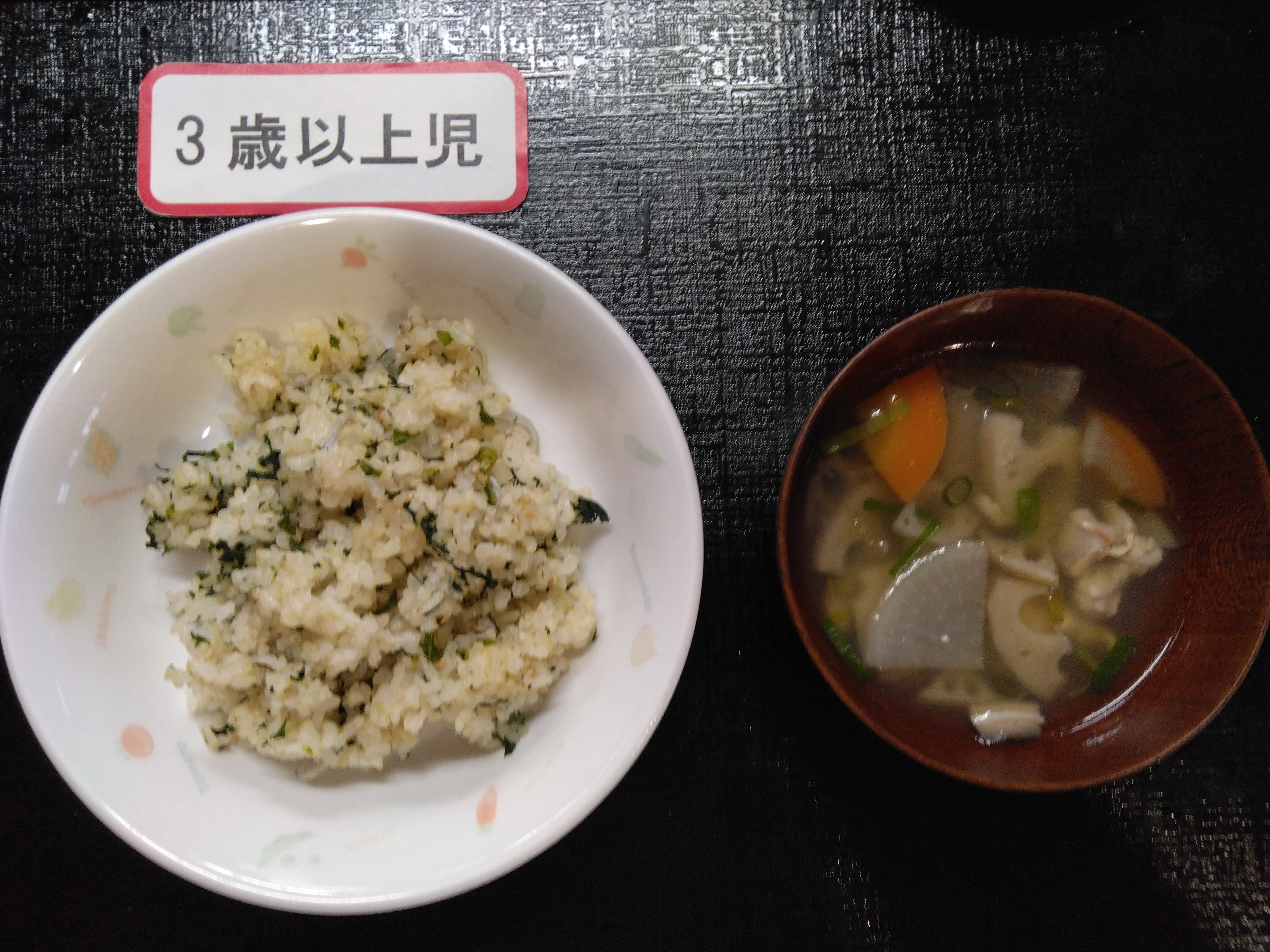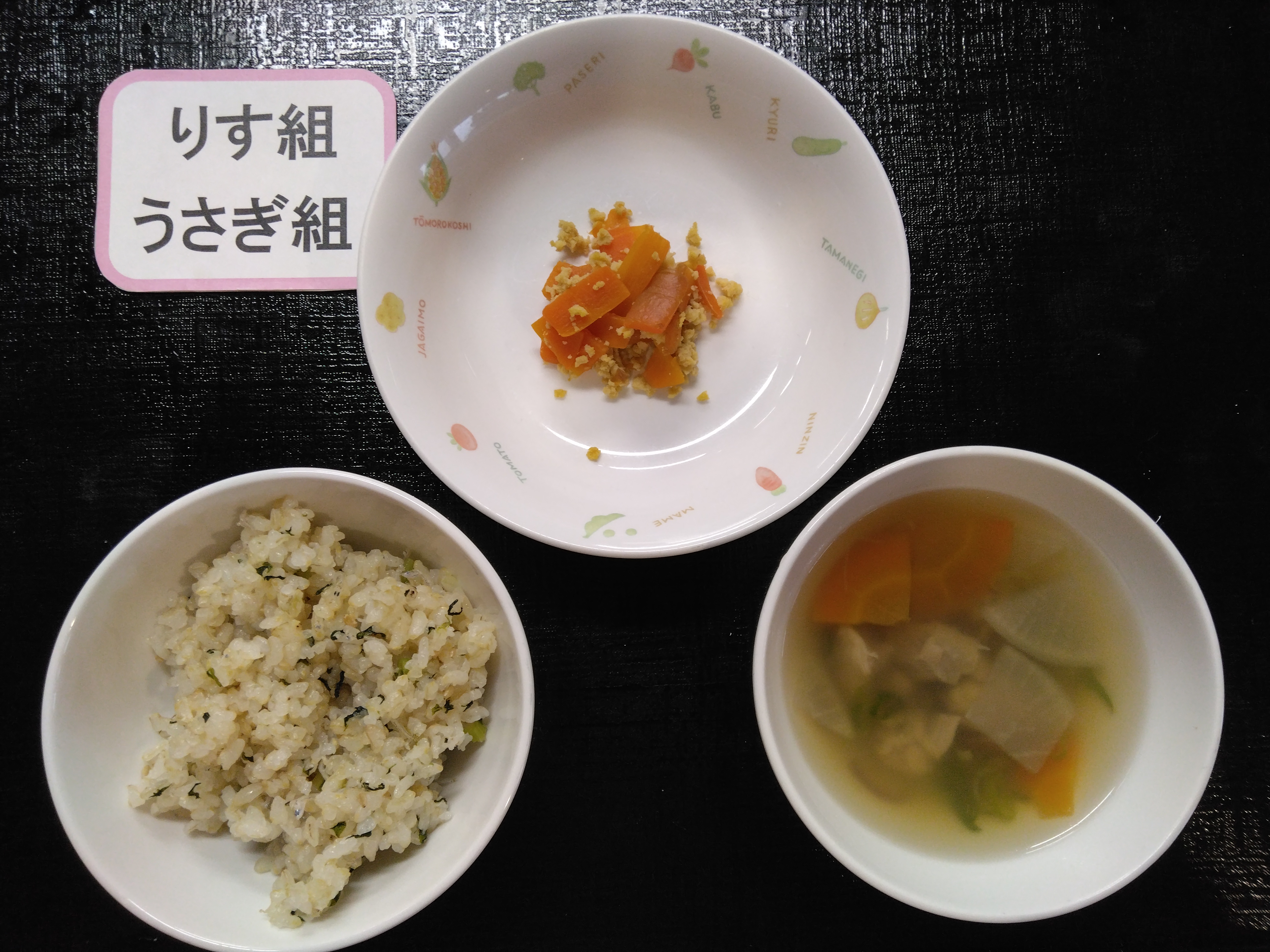 今日は冬野菜の大根と蓮根の他に、鶏肉やしいたけ、にんじんが入っています。
