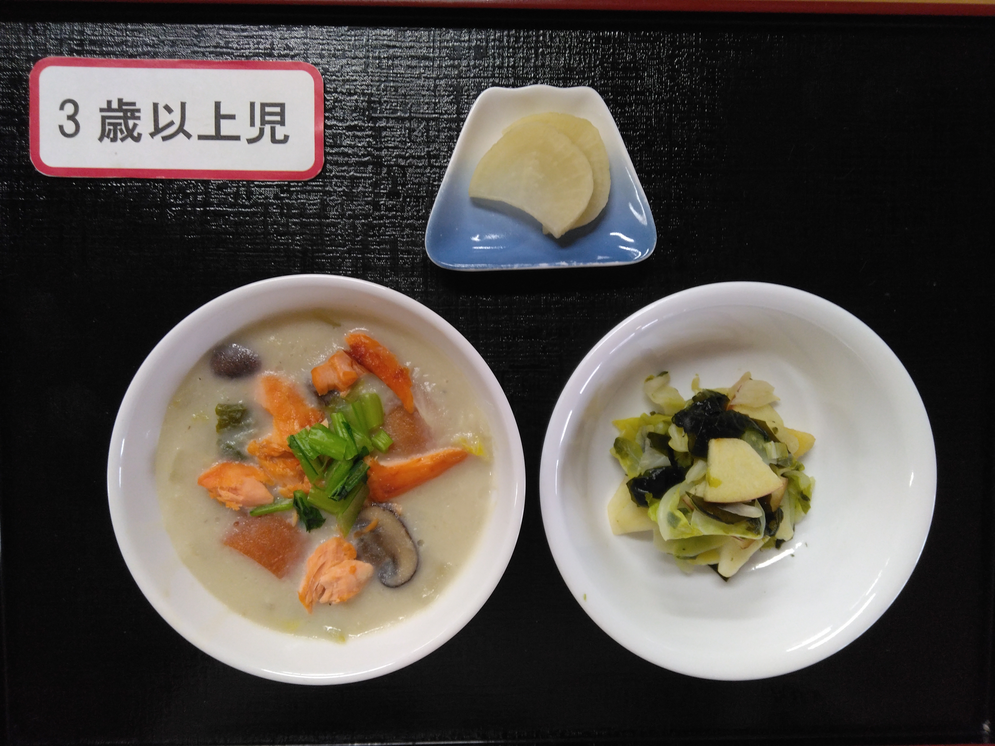 - 今日はリクエストメニューの「鮭の豆乳シチュー」です。