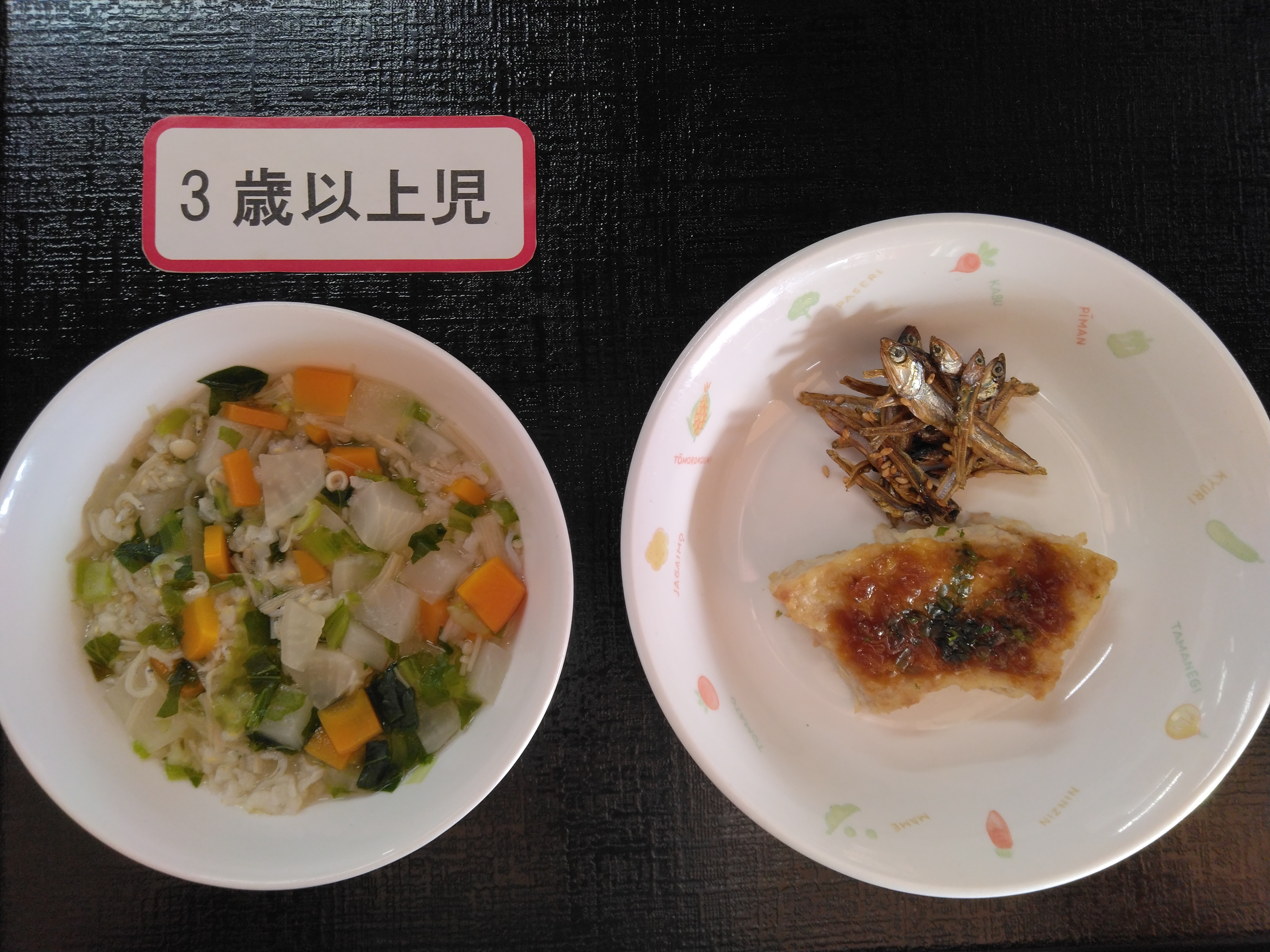 おかずの白菜は、園の畑でも育っているように冬にとれる野菜です。