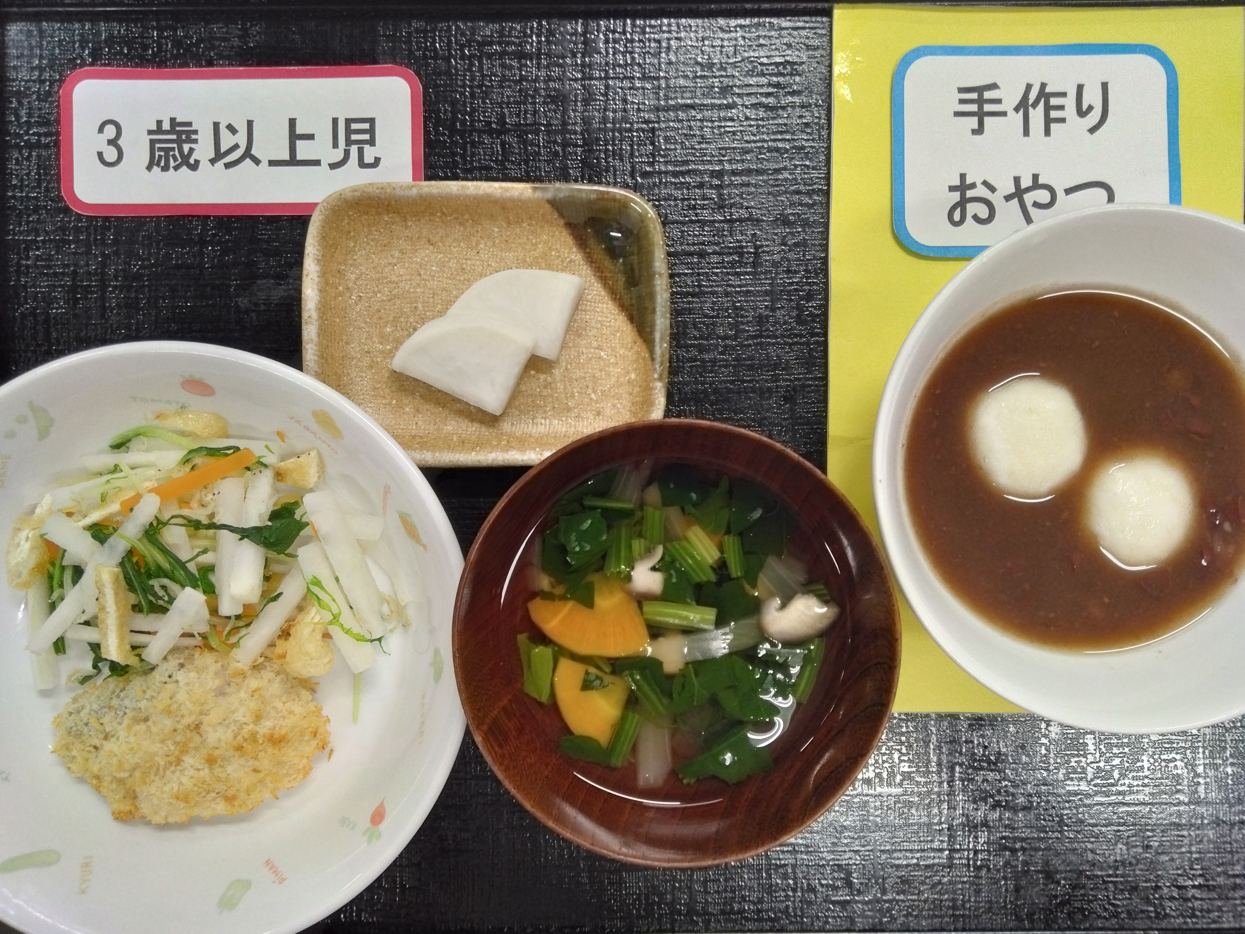 園も今日で最後なので、みんなで1年の終わりに食べる年越しそばにちなんで年越しうどん汁を食べましょう。