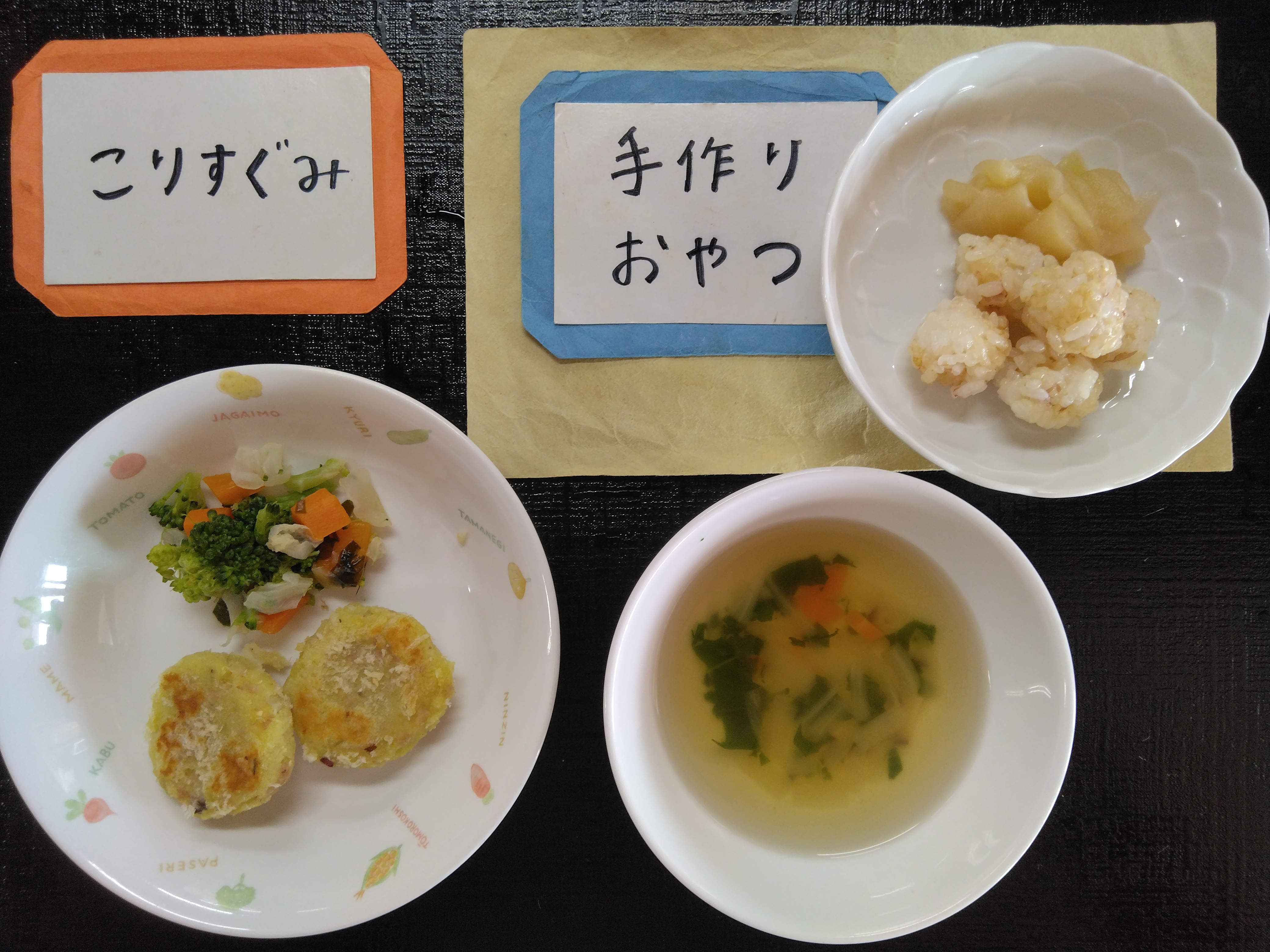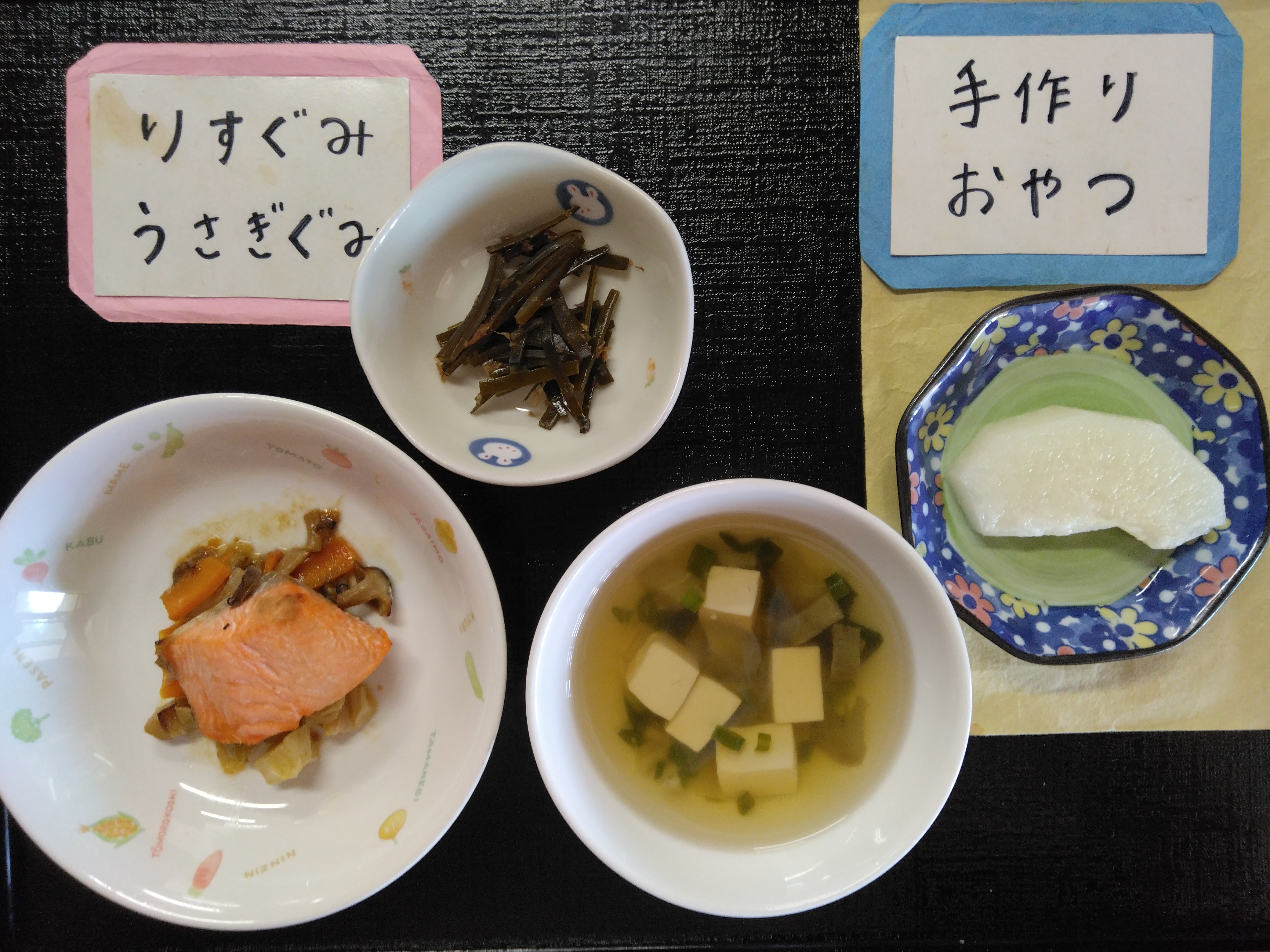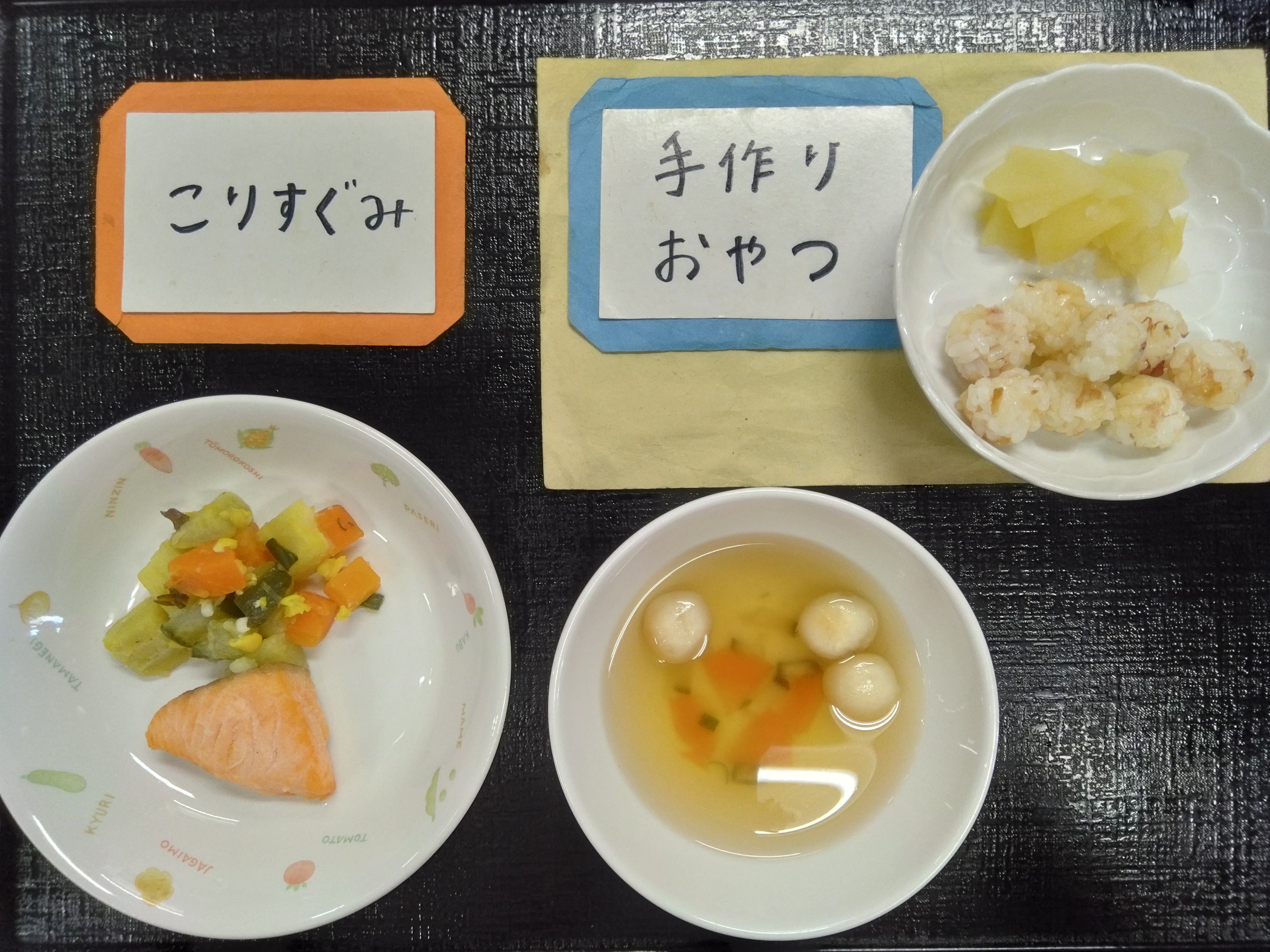 園では高野豆腐を油で揚げ、野菜や芋、きのこと一緒に煮込んでいます。