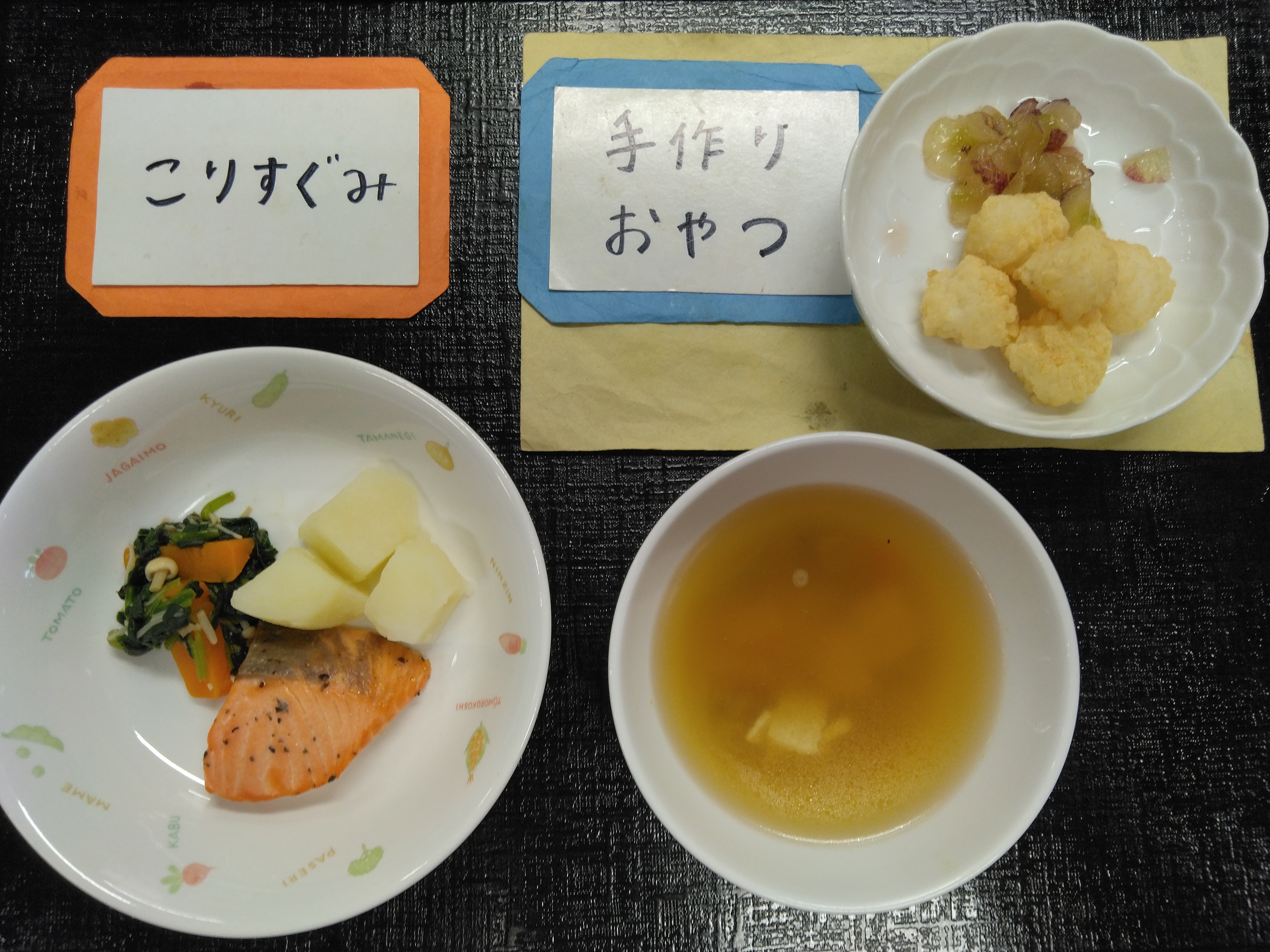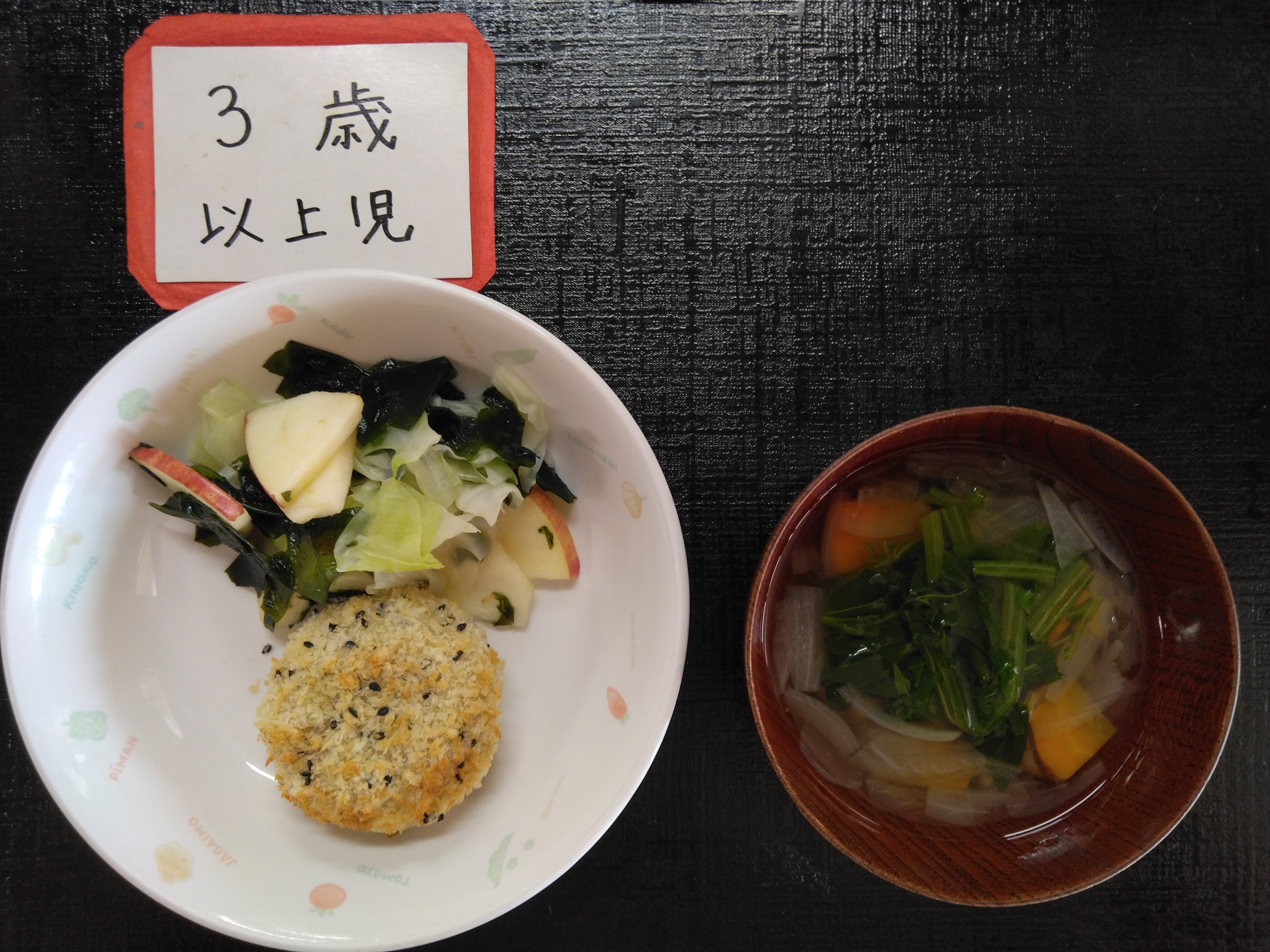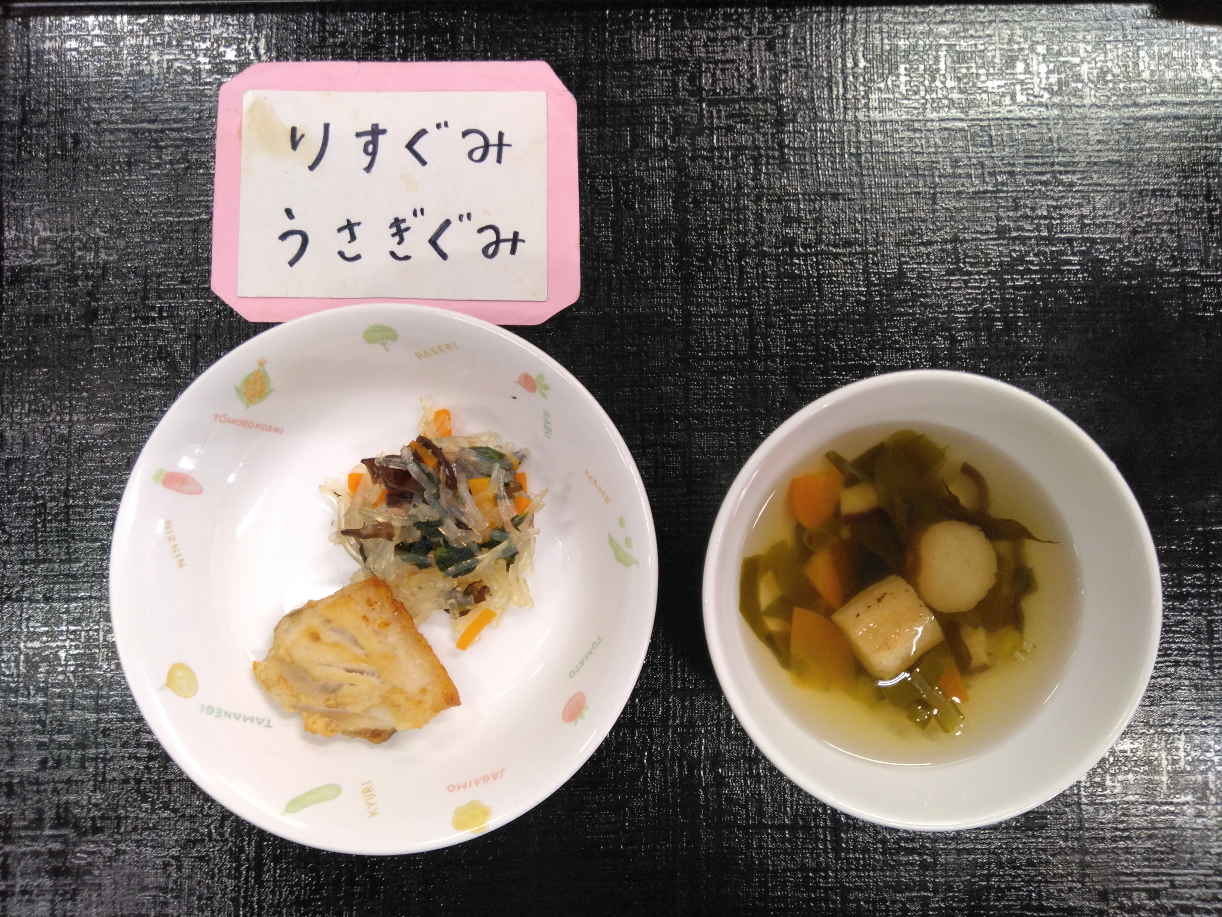 - 今日の給食には秋にいちばん美味しく食べられる食べ物が3つ入っています。