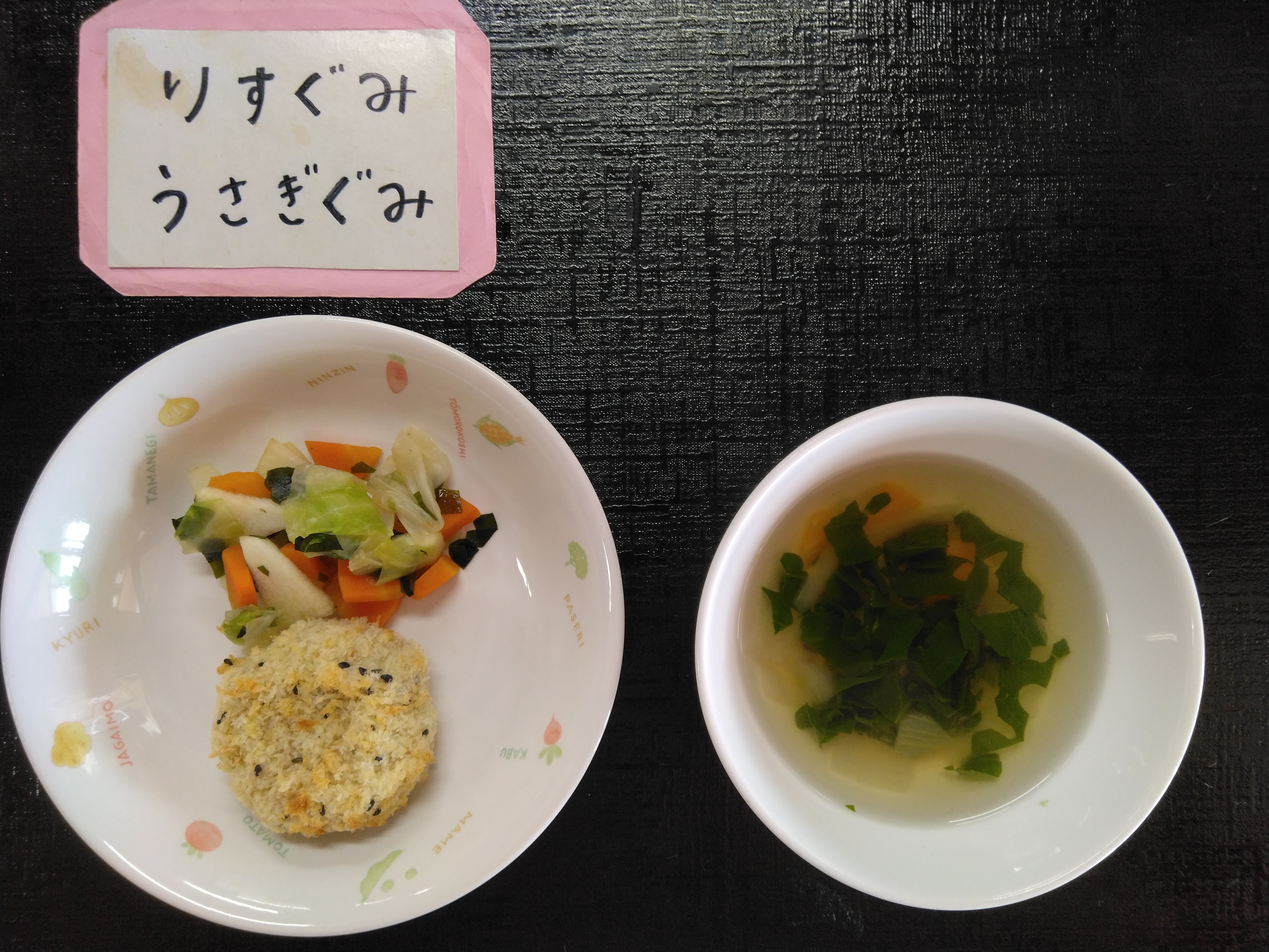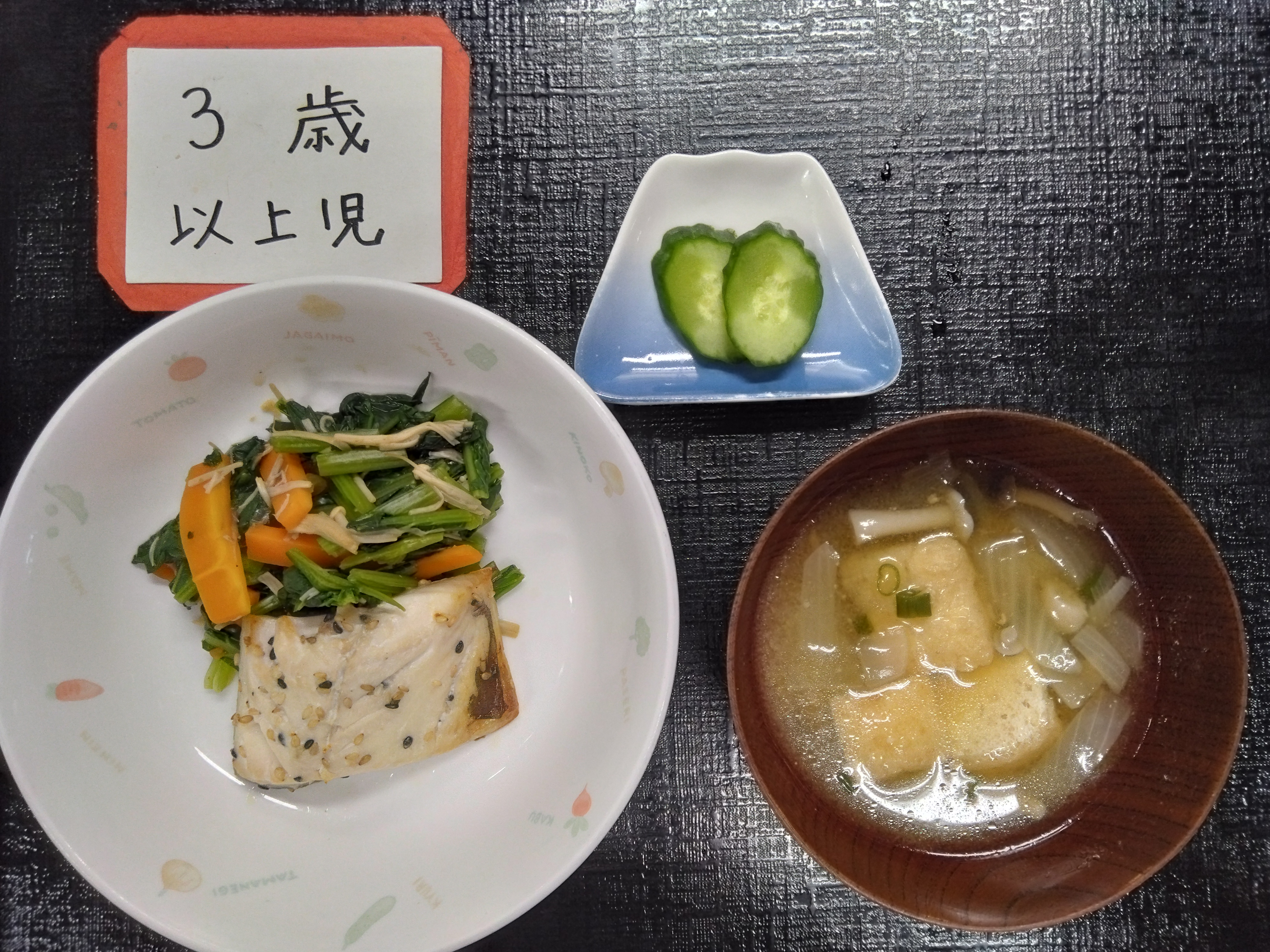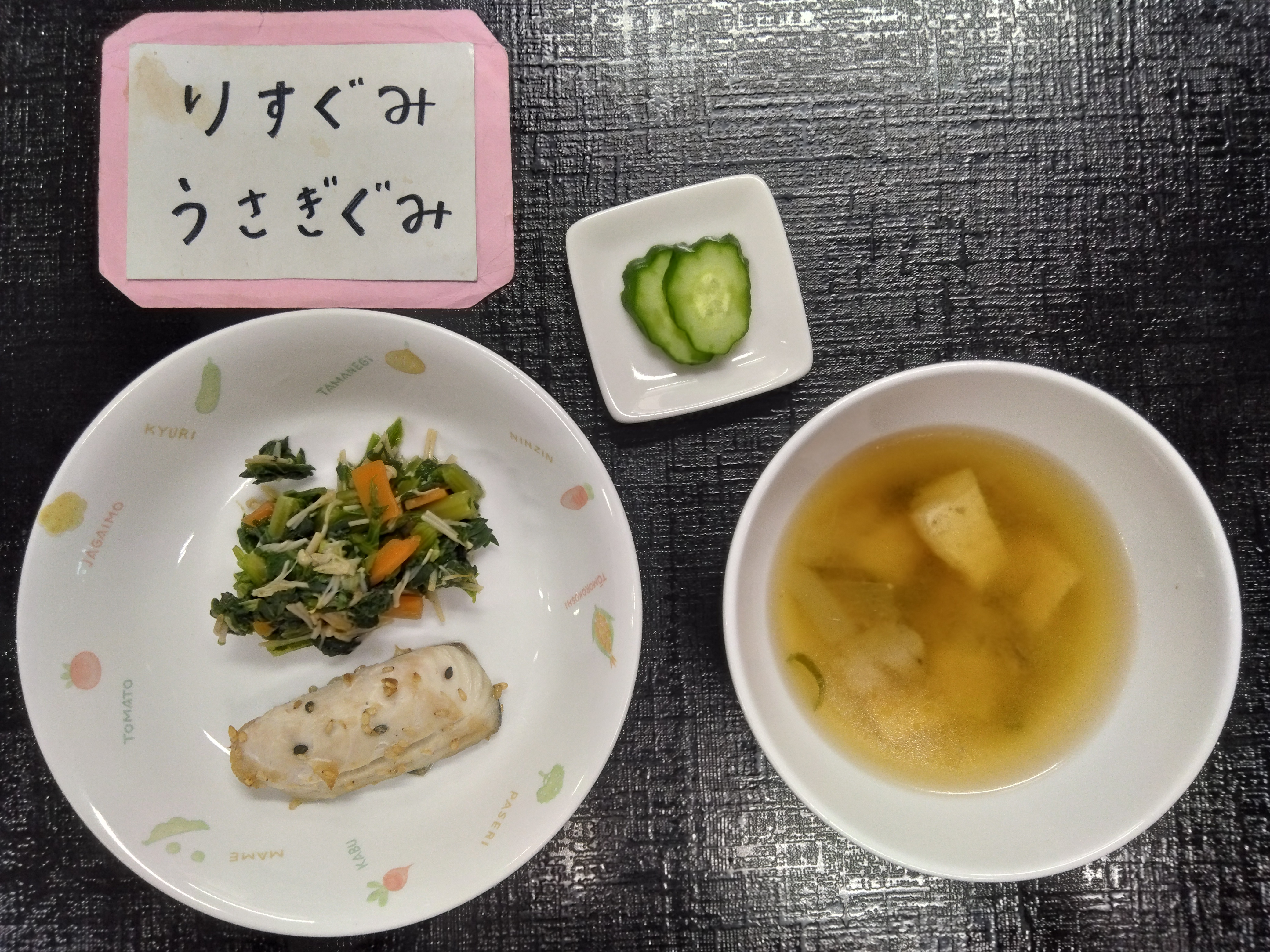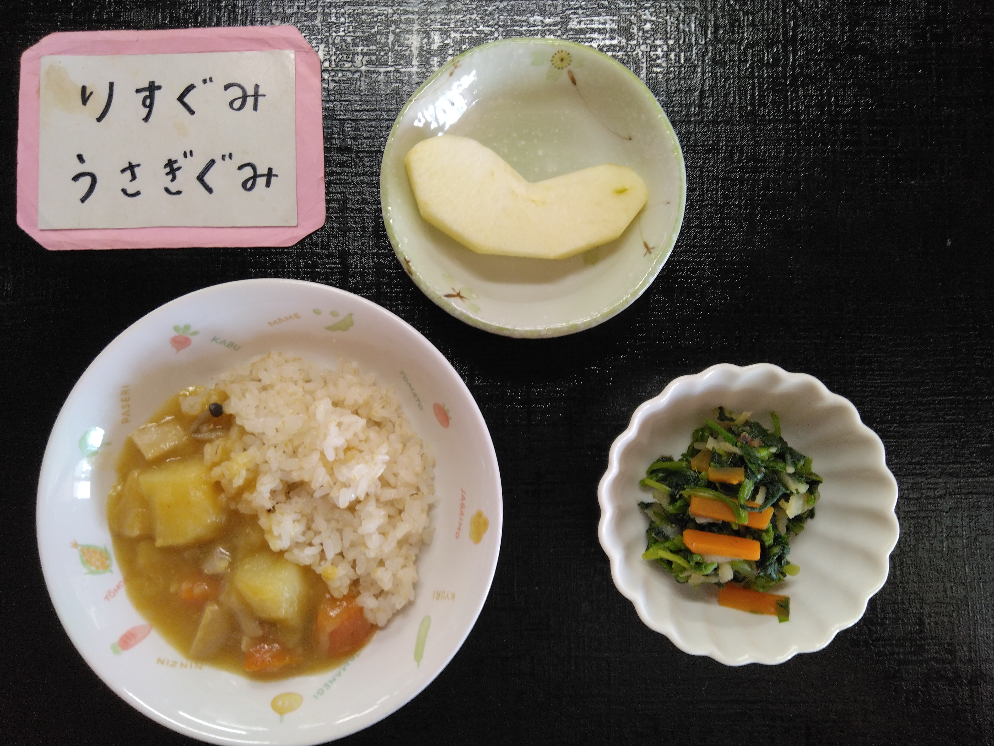 - 今日の給食には秋にいちばん美味しく食べられる食べ物が3つ入っています。