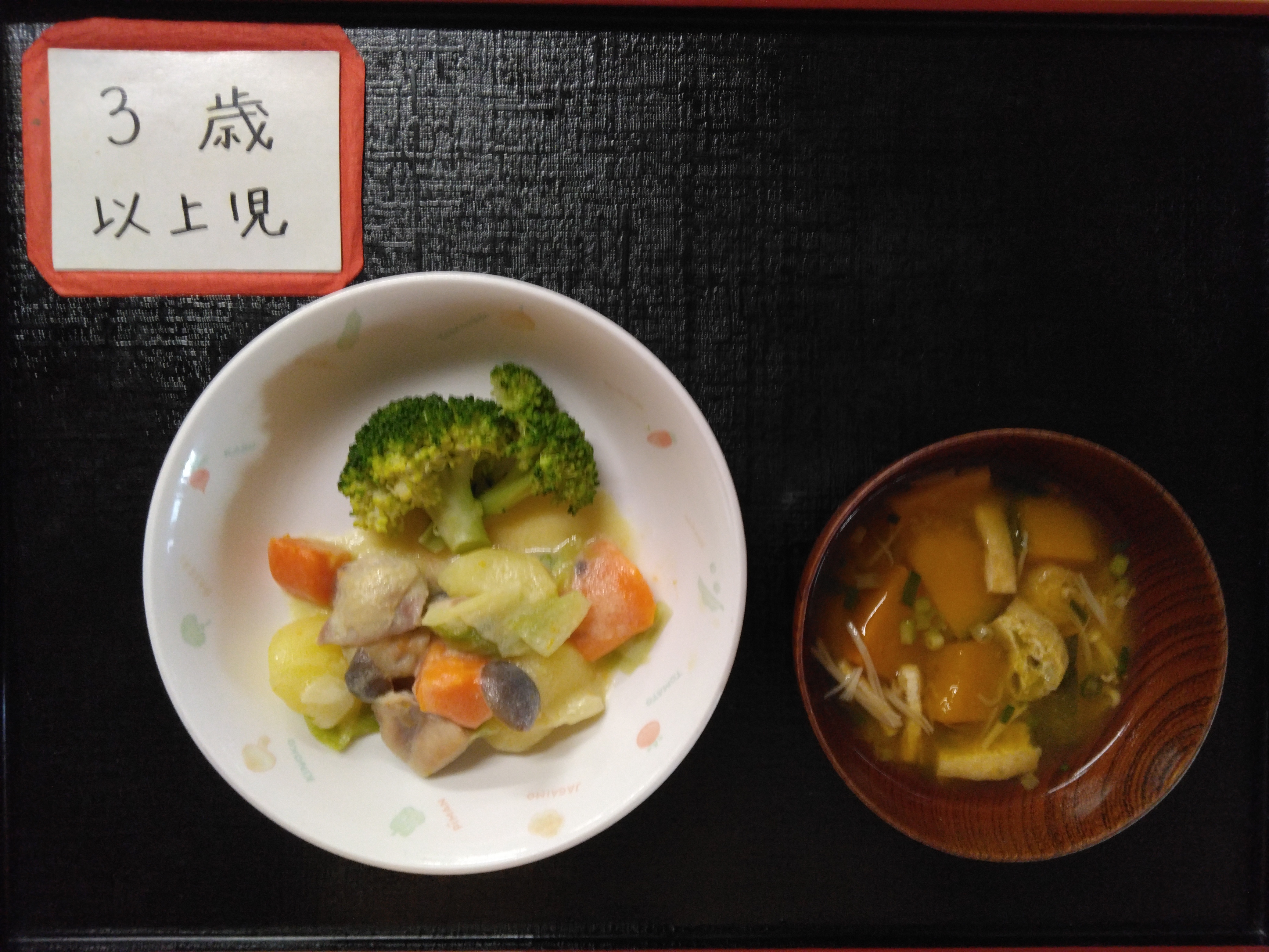 - 今日のおかずは、野菜や鶏肉を柔らかく煮込み