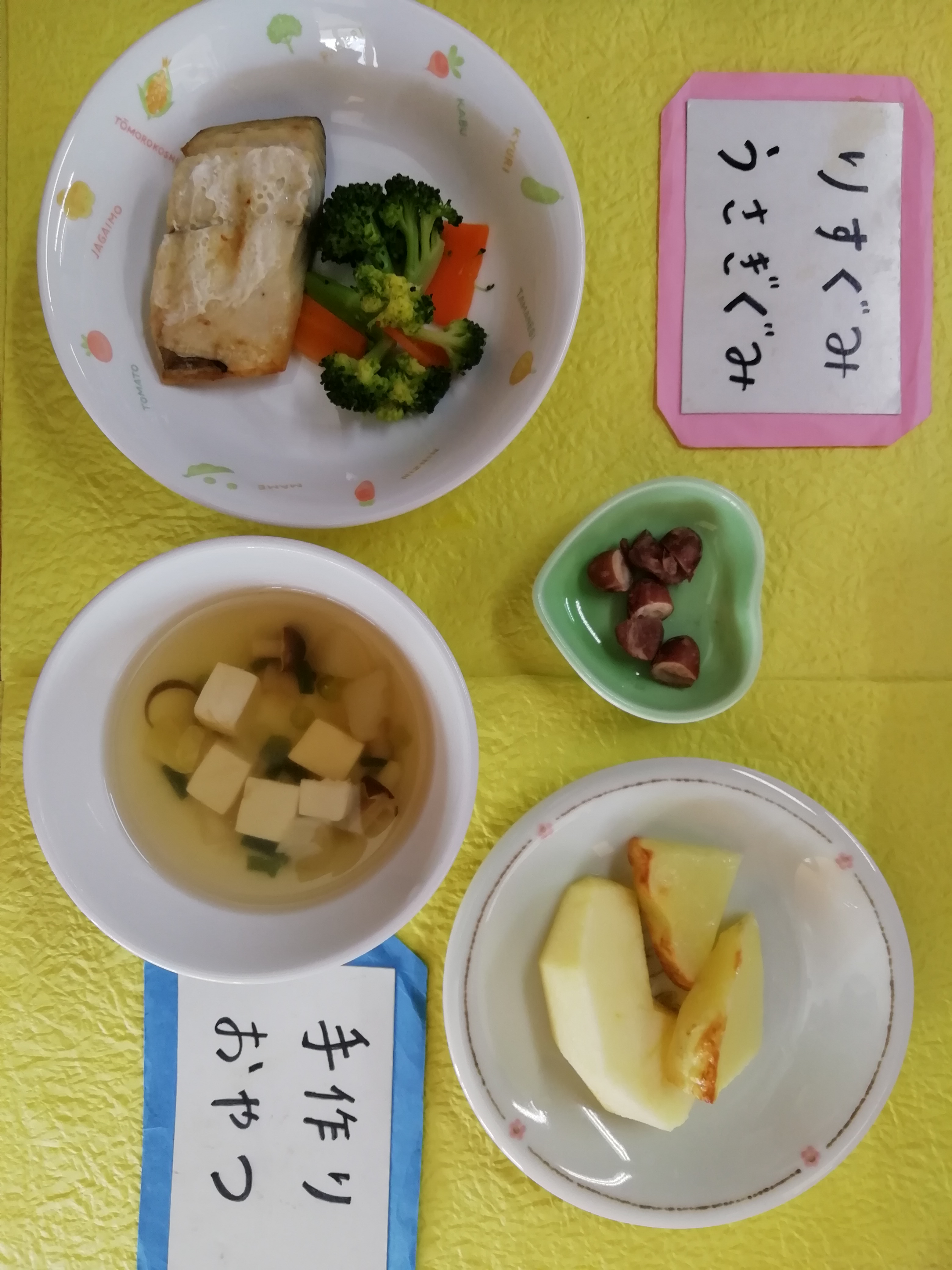 今日の給食にも秋においしくなるものをいろいろ取り入れました。