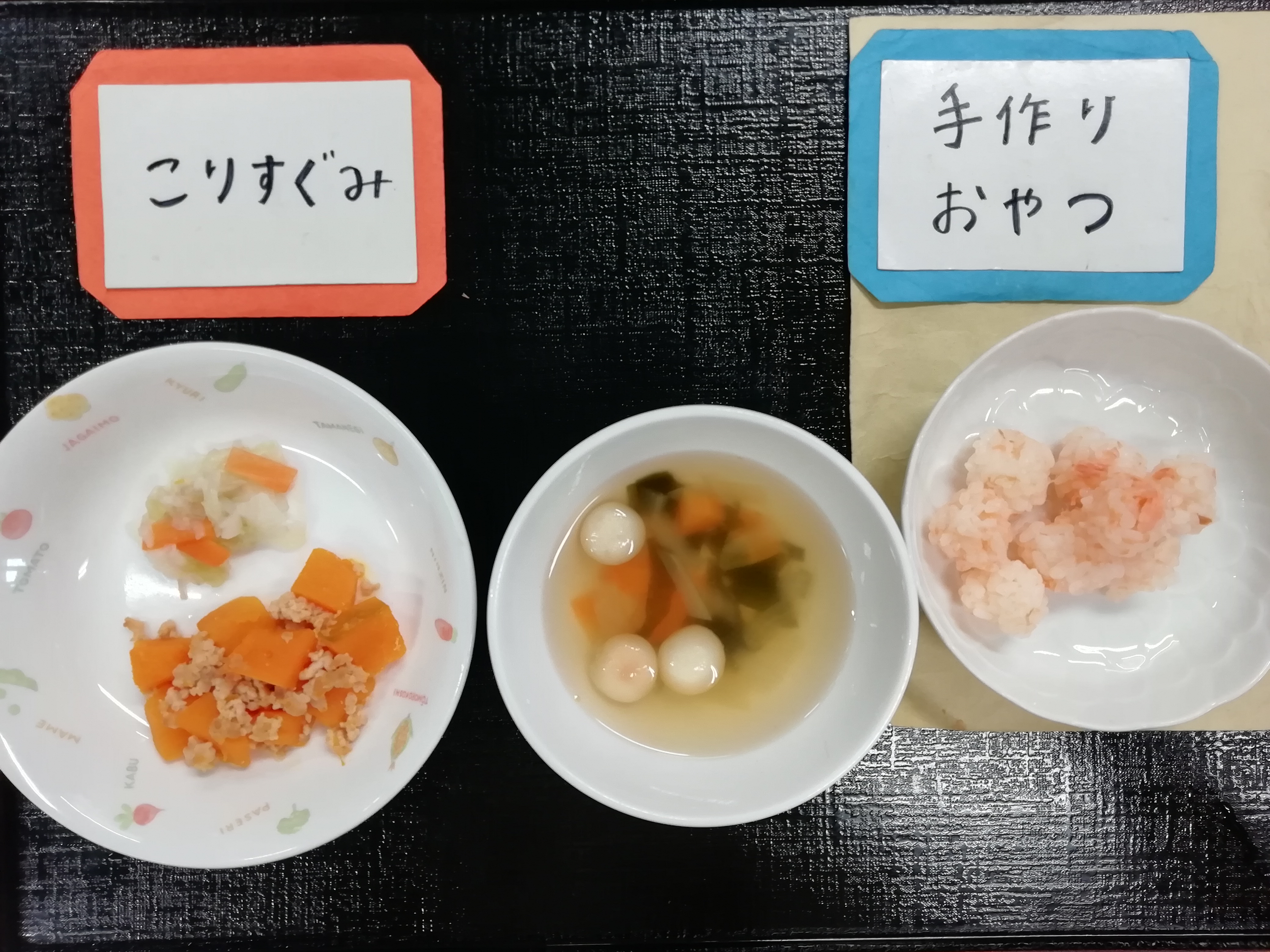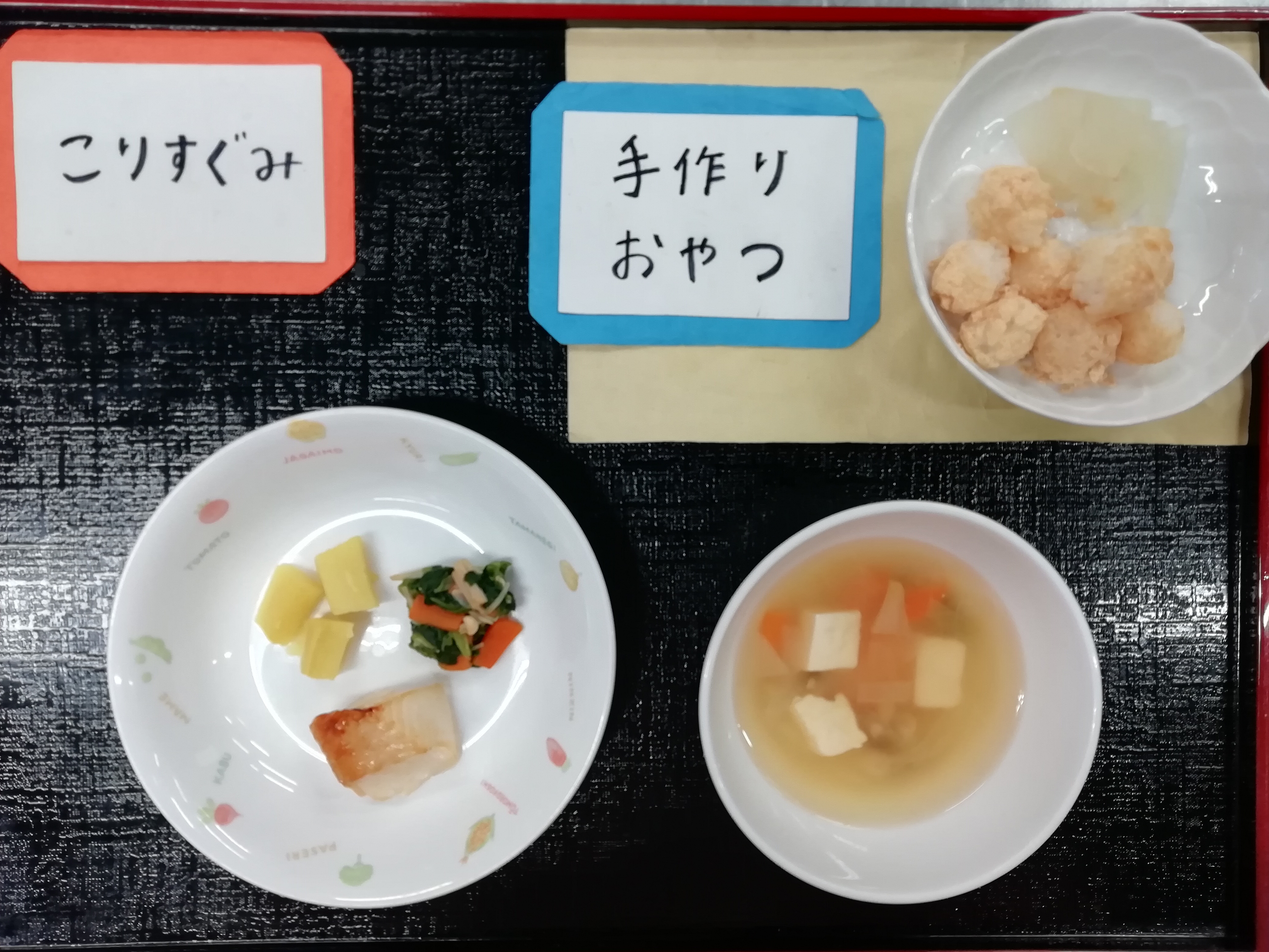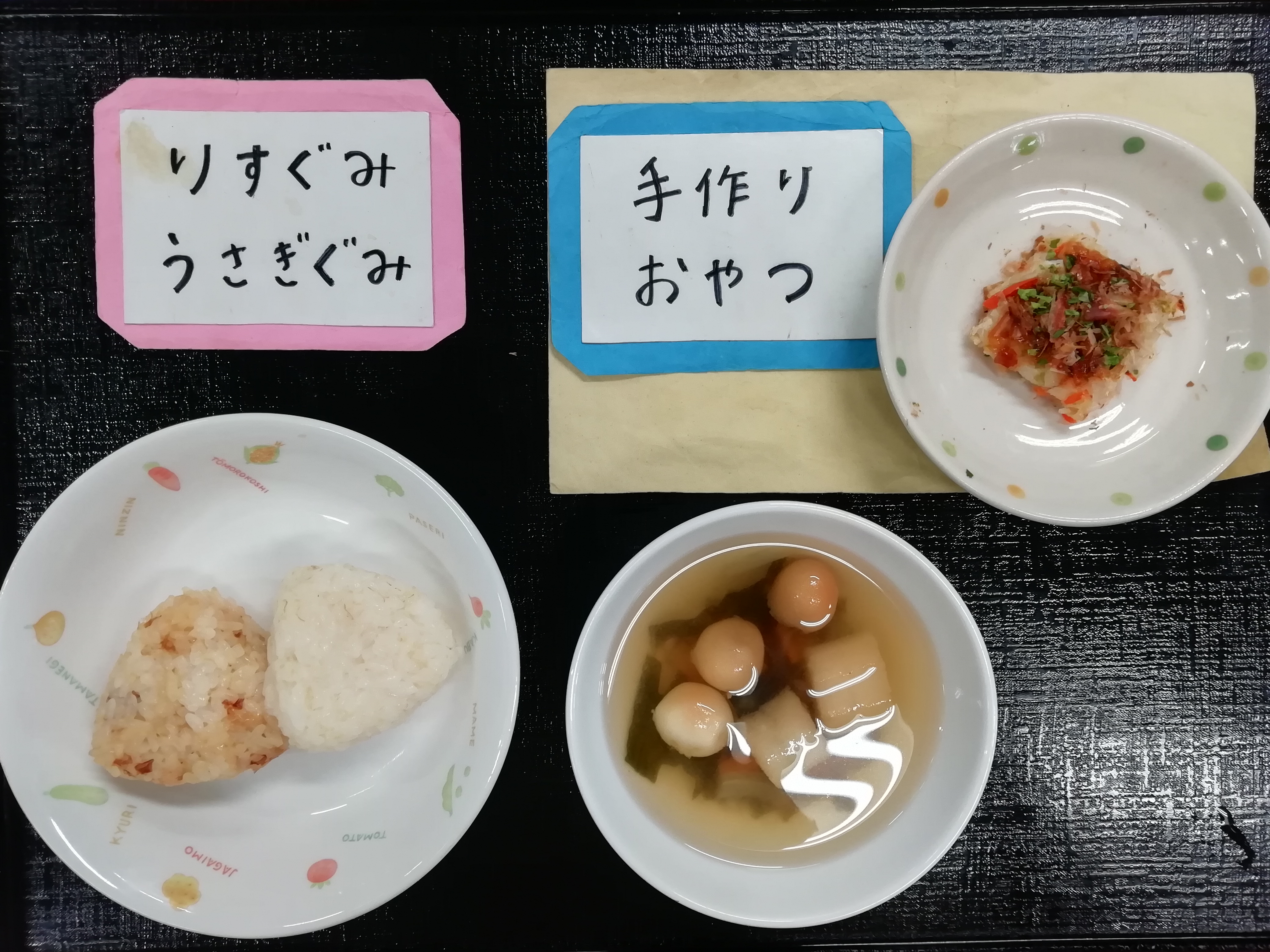 ※りす組さんのおやつのおにぎりは、こりす組さんと同じものを食べました。