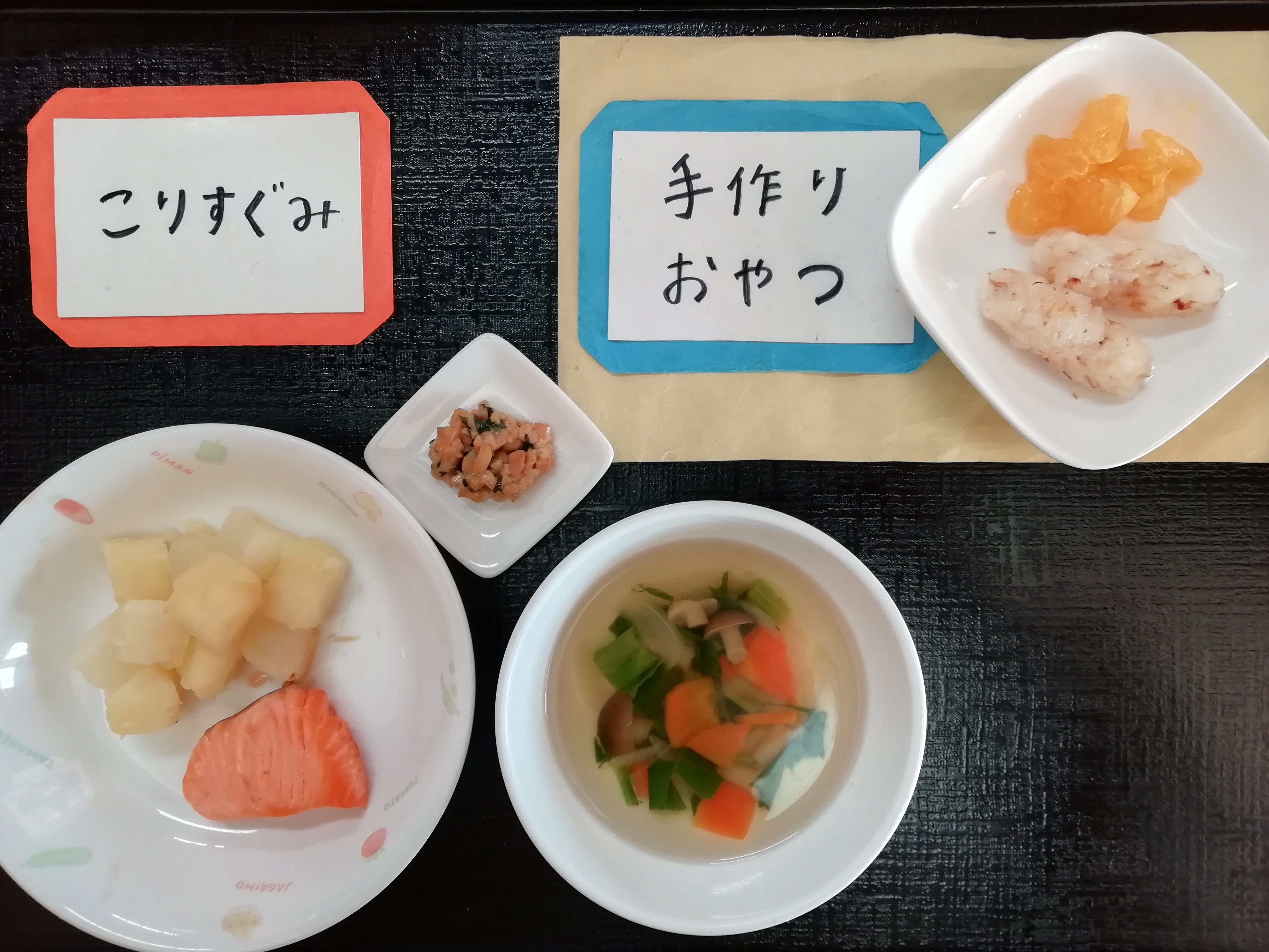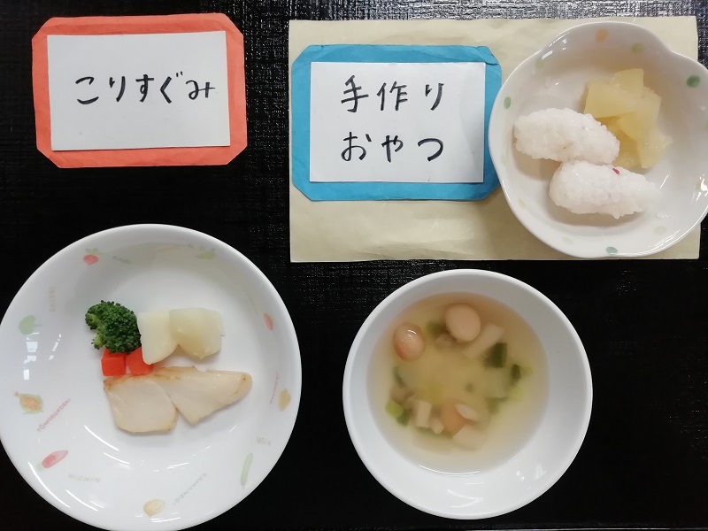 園では高野豆腐を油で揚げ、野菜や芋、きのこと一緒に煮込んでいます。