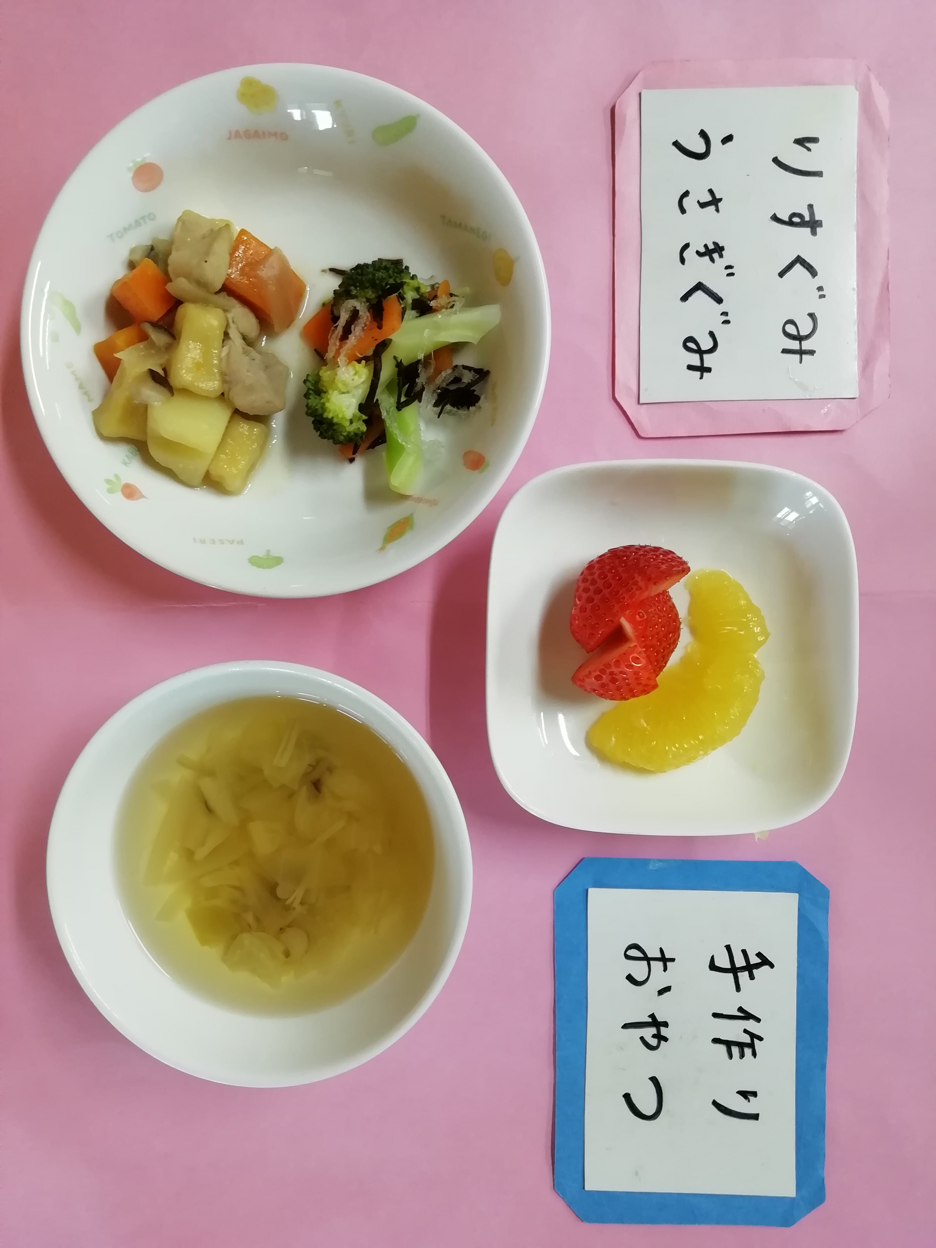 - 今日の料理の中に園の畑でとれたものが2つ入っています。