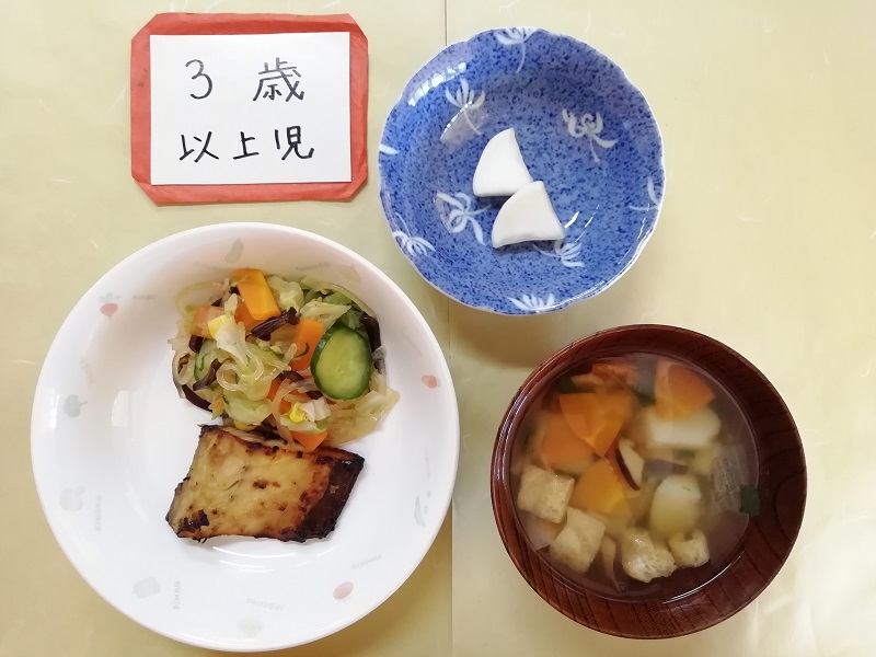 - 園では、ピンク色をした鮭、白くてやわらかいカレイ、
