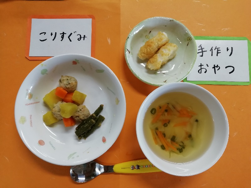 ※こりす組さんはおやつでおかゆも食べました。